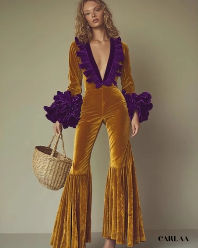 Élégance et raffinement définissent cette combinaison disponible en vert, bleu et rose. Avec sa coupe fluide et sa taille ceinturée, elle sublime la silhouette et offre une liberté de mouvement inégalée. Idéale pour les occasions spéciales, sa couleur versatile s'adapte à chaque teint pour un rendu toujours plus personnalisé.