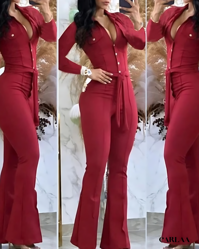 Élégance et raffinement définissent cette combinaison disponible en vert, bleu et rose. Avec sa coupe fluide et sa taille ceinturée, elle sublime la silhouette et offre une liberté de mouvement inégalée. Idéale pour les occasions spéciales, sa couleur versatile s'adapte à chaque teint pour un rendu toujours plus personnalisé.