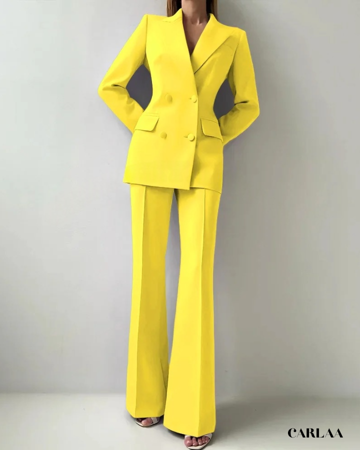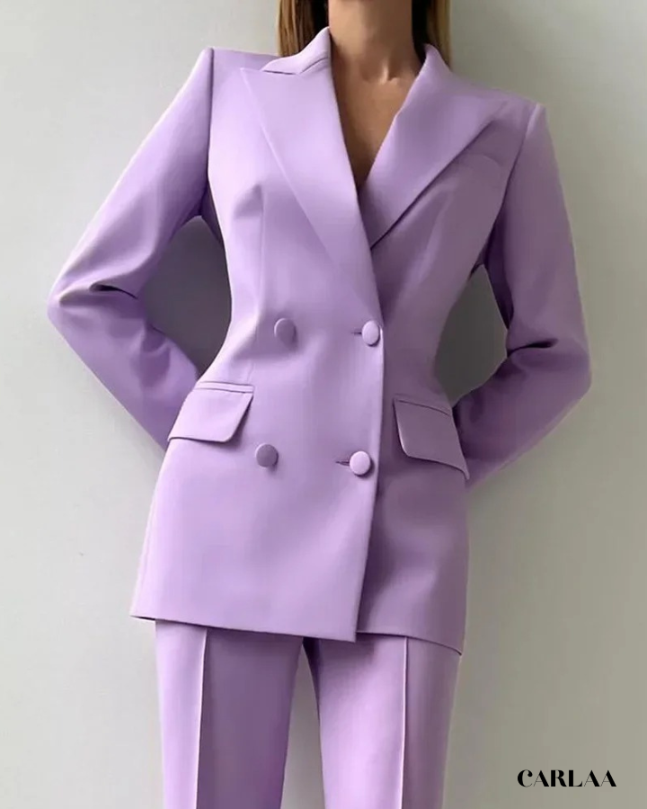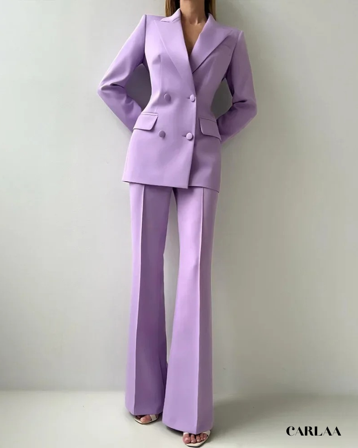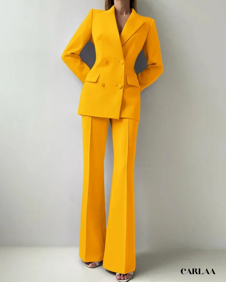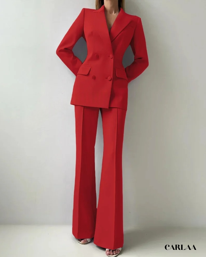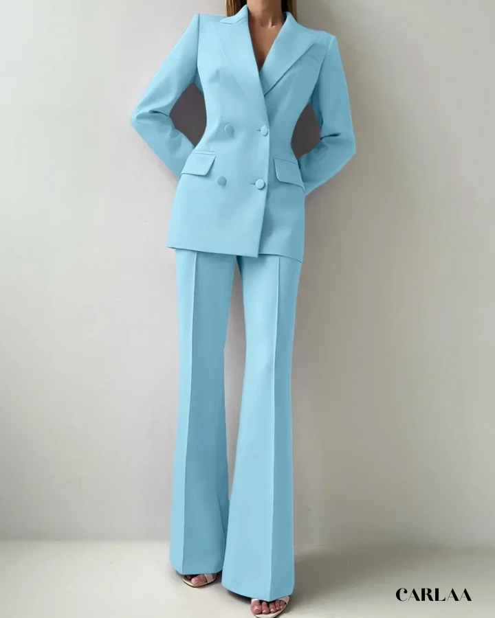 Le blazer croisé oversize arbore des revers larges et structurés qui créent cette silhouette architecturale puissante et résolument contemporaine. Les boutons ton sur ton et les poches à rabat fonctionnelles ajoutent ces détails pratiques qui allient élégance et fonctionnalité avec intelligence. La coupe allongée du blazer crée une ligne verticale flatteuse qui sculpte ta silhouette avec sophistication. Le pantalon droit à pli marqué tombe impeccablement jusqu'au sol et allonge tes jambes pour un effet statuesque saisissant. Ce cérémonie tailleur femme mariage représente le choix parfait pour toutes les occasions spéciales: mariages civils, cérémonies laïques, baptêmes chics, événements professionnels prestigieux ou comme invitée d'honneur stylée.