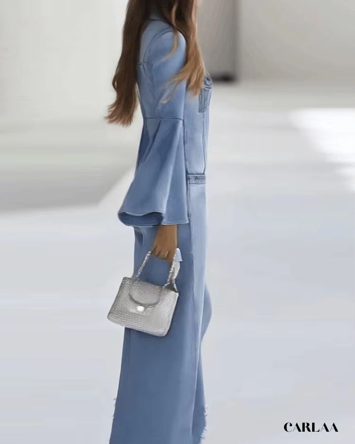 Sa coupe ajustée met en valeur la silhouette, tandis que ses manches évasées et son jean légèrement délavé apportent une touche bohème et sophistiquée. Polyvalente et stylée, elle se porte aussi bien en journée avec des sandales qu’en soirée avec des talons et des accessoires chic. Cette combinaison en jean femme est idéale pour un look mode original et affirmé en toute occasion.