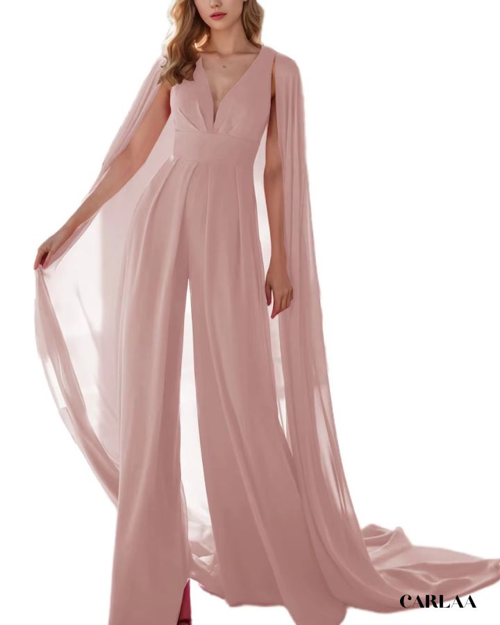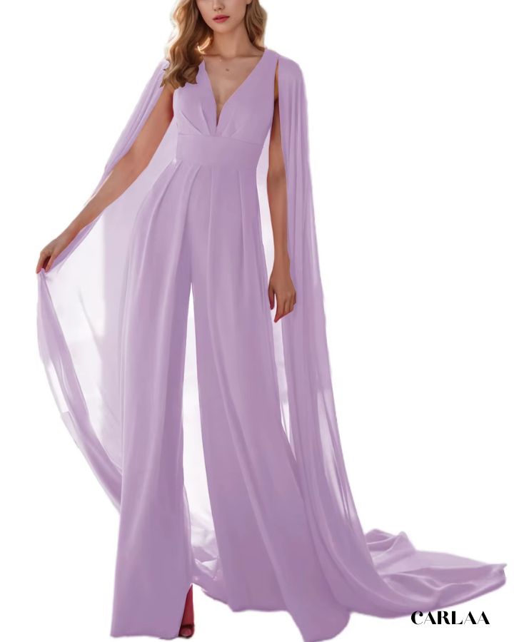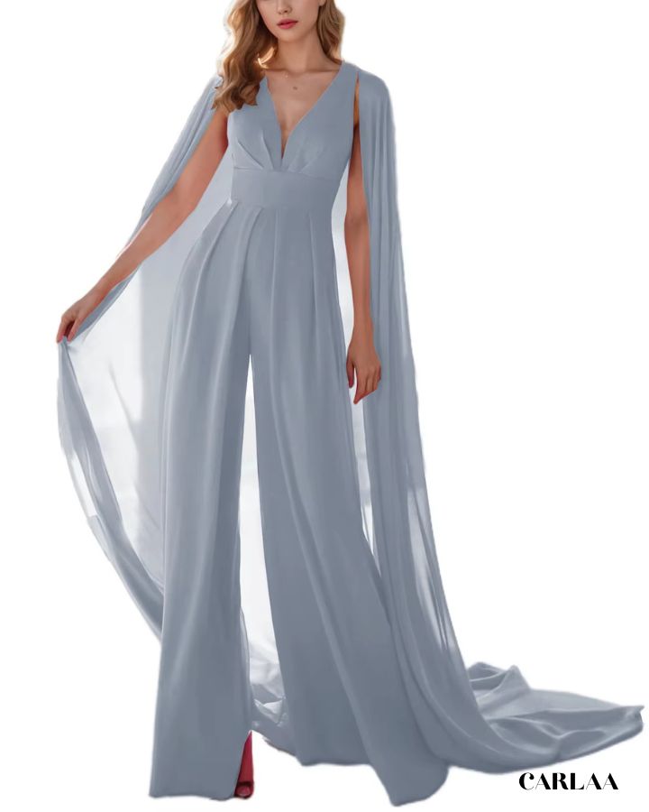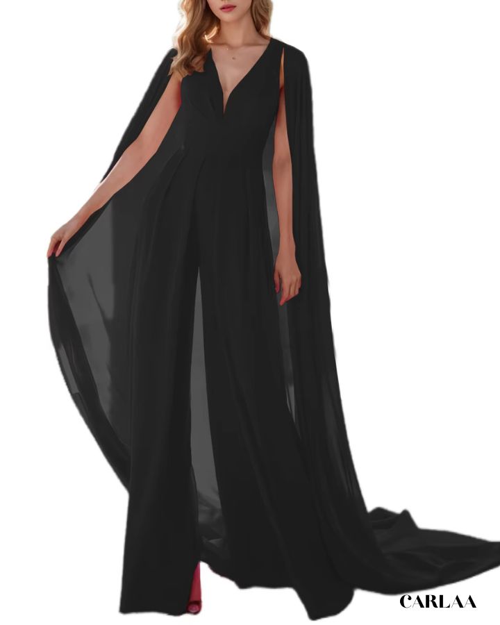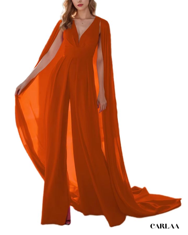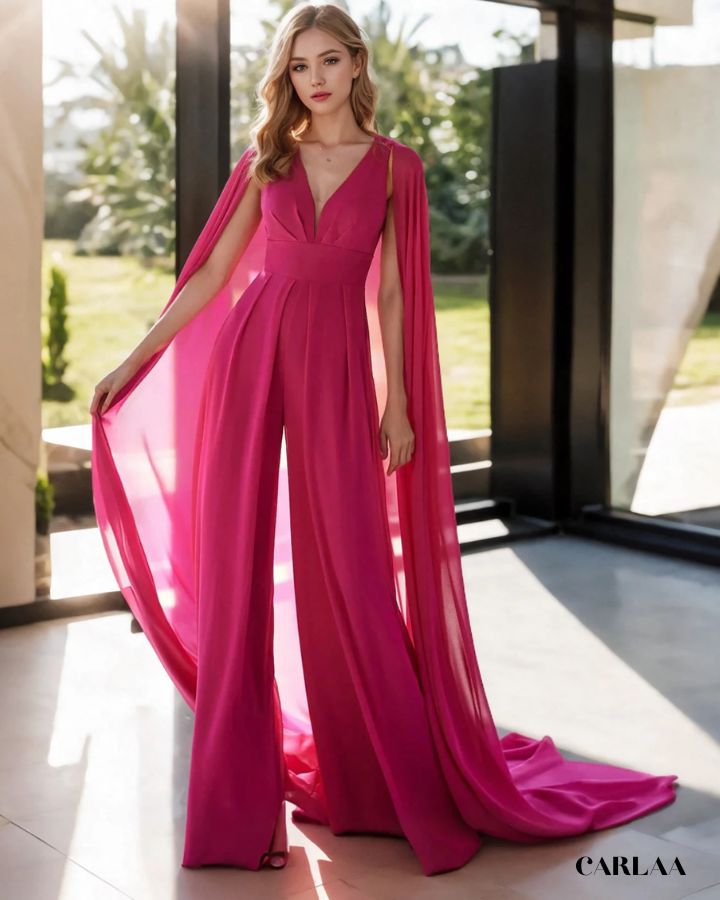 Sa coupe évasée met en valeur la silhouette tandis que la cape légère apporte une touche spectaculaire et sophistiquée. Parfaite pour un mariage, une soirée ou un événement spécial, elle incarne l’équilibre parfait entre féminité et puissance. Disponible en plusieurs couleurs pour s’adapter à ton style unique — du fuchsia vibrant au bleu profond.