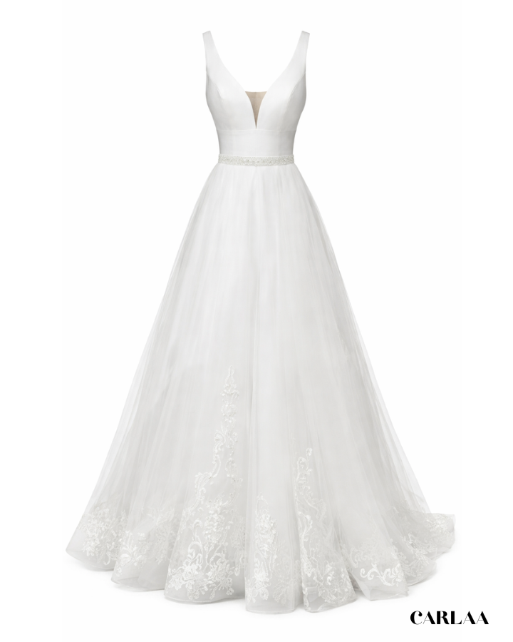 Adopte un style nuptial moderne avec cette combinaison de mariage au col V.