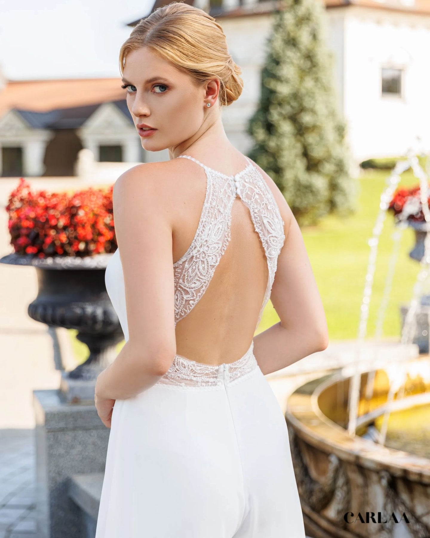 Laisse-toi séduire par cette combinaison dos nu à la fois raffinée et audacieuse, pensée pour la mariée contemporaine qui veut allier confort et élégance. Son décolleté plongeant sublime ton port de tête, tandis que le dos en dentelle délicate apporte une touche de sensualité tout en douceur.