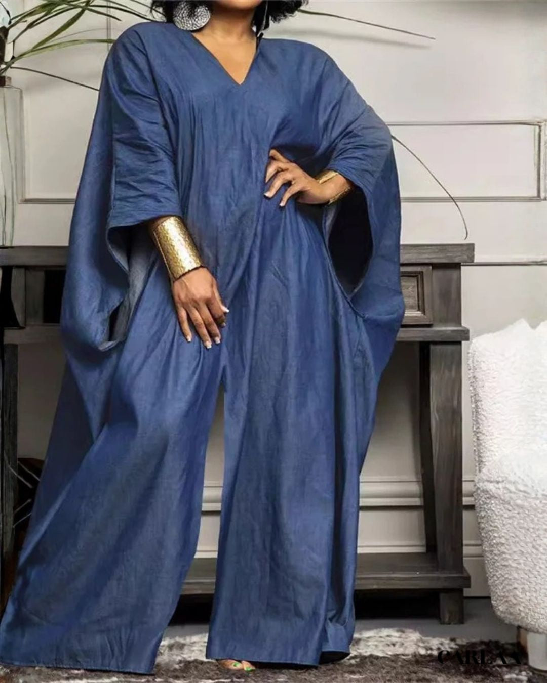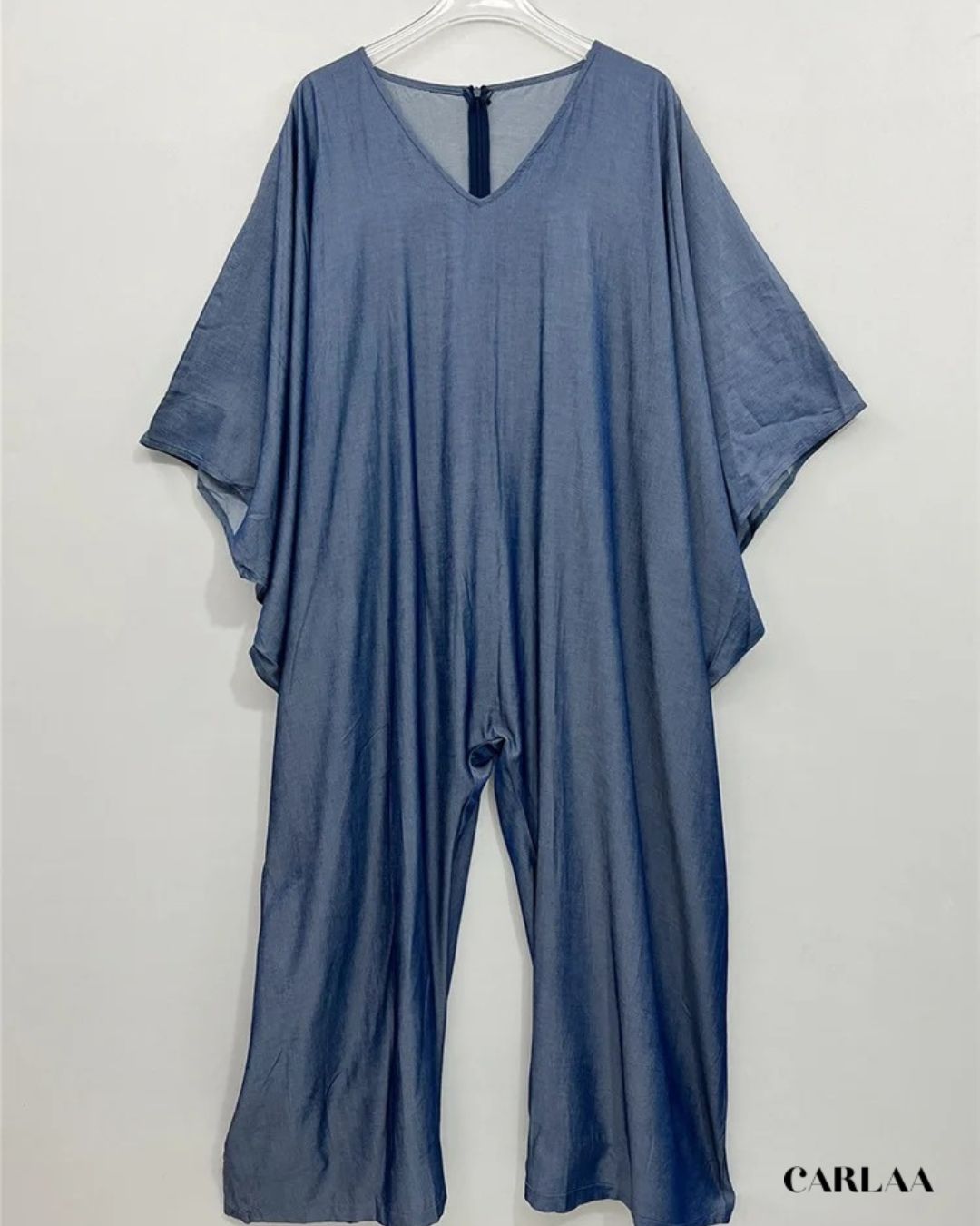 Le décolleté en V flattreur apporte une touche de féminité à cette silhouette volontairement ample, tandis que les manches kimono ultra-larges offrent une liberté de mouvement incomparable et créent cette esthétique bohème-chic si recherchée. La coupe oversize volumineuse flotte gracieusement autour de ton corps sans jamais le comprimer, cachant délicatement les petites imperfections tout en te permettant de respirer librement – le vêtement parfait pour ces journées où tu veux être confortable sans sacrifier ton allure. Le pantalon palazzo aux jambes ultra-larges tombe majestueusement jusqu'au sol, créant une ligne verticale élégante qui compense généreusement le volume du haut.