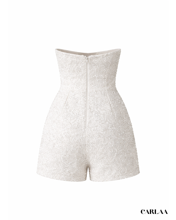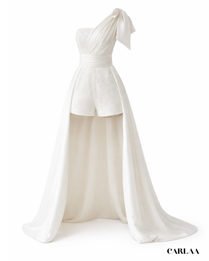 Craque pour cette combishort de mariage, une pièce unique qui allie chic et originalité.