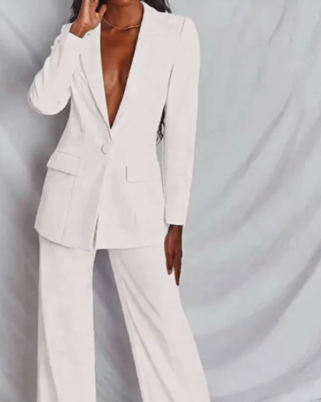 Transforme ta garde-robe professionnelle avec cet ensemble costume professionnel deux pièces qui redéfinit l'élégance corporate contemporaine. Ce tailleur pantalon impeccablement coupé se compose d'un blazer long structuré avec revers classiques et fermeture à un bouton unique, créant une silhouette allongée et sophistiquée qui commande immédiatement le respect en milieu professionnel. Le décolleté en V profond apporte une touche de féminité audacieuse tout en restant parfaitement approprié pour le bureau, te permettant de jouer avec différents styles de tops dessous selon l'occasion.