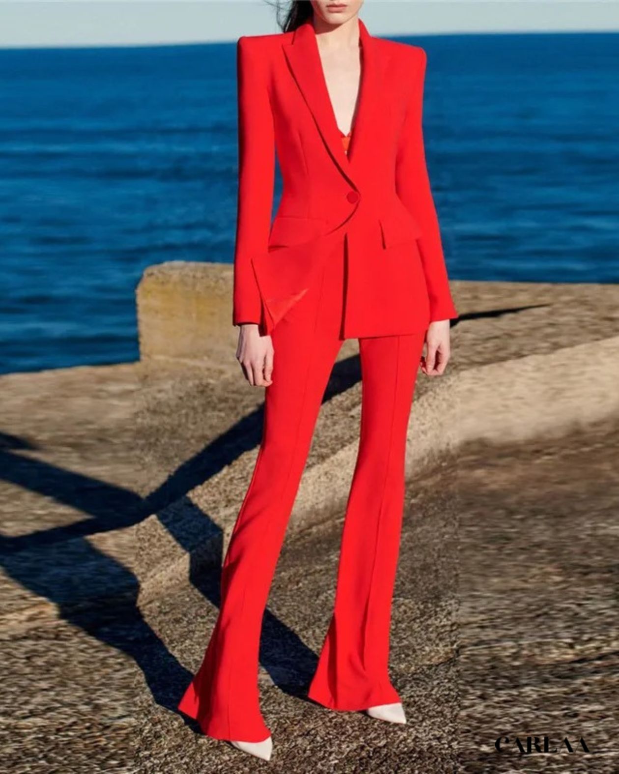 ✨Ensemble Tailleur Femme Rouge – Affirme ta personnalité avec cet ensemble tailleur femme rouge incandescent qui ne laisse personne indifférent✨