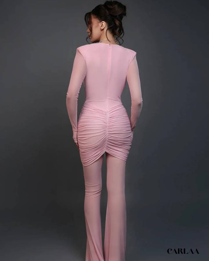 Sa coupe près du corps met en valeur tes formes tandis que le jeu subtil de transparence apporte une touche sensuelle et raffinée. Le décolleté profond et les drapés structurés subliment la silhouette, créant un look glamour et moderne. Idéale pour une soirée, un cocktail ou un événement spécial, elle se porte facilement avec une paire de talons et quelques bijoux discrets pour un effet sophistiqué assuré. Avec cette pièce, tu es certaine d’attirer les regards et de dégager une confiance irrésistible.