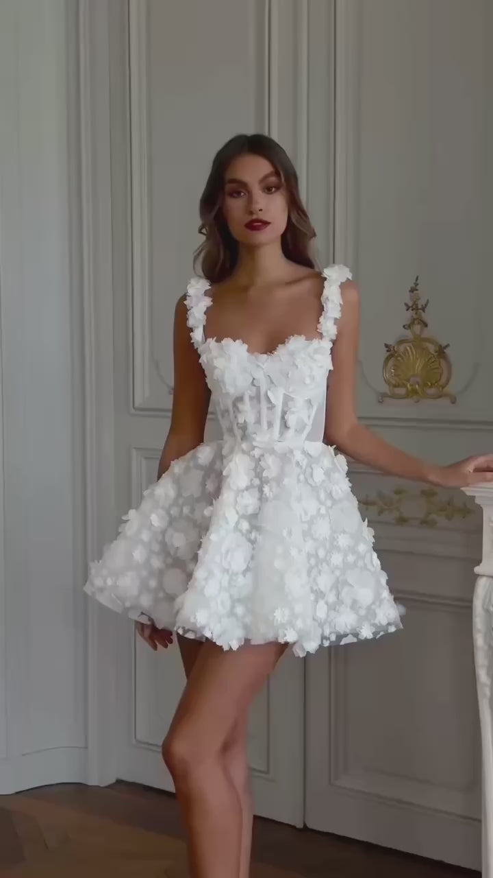 Immerge-toi dans l'élégance de cette robe exquise, conçue avec une dentelle finement travaillée et agrémentée de fleurs en relief qui captent subtilement la lumière.