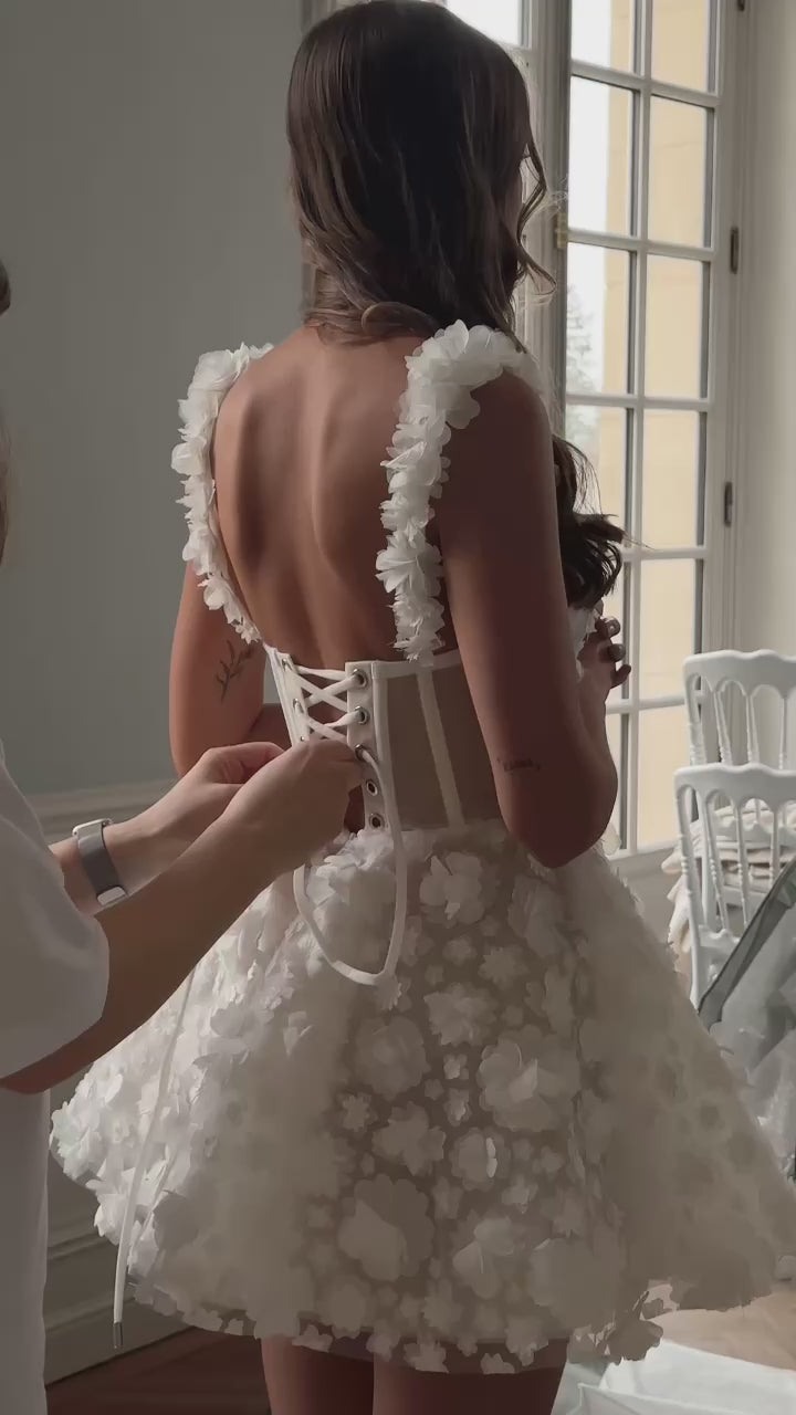Son corsage bien ajusté est rehaussé d'un lacet raffiné à l'arrière, offrant un contraste charmant avec la jupe ample qui flotte gracieusement. Idéale pour des réceptions ou des cérémonies, cette création assure une allure romantique et raffinée. Plus qu'une simple tenue, elle est une véritable œuvre d'art qui exalte la délicatesse et l'élégance.