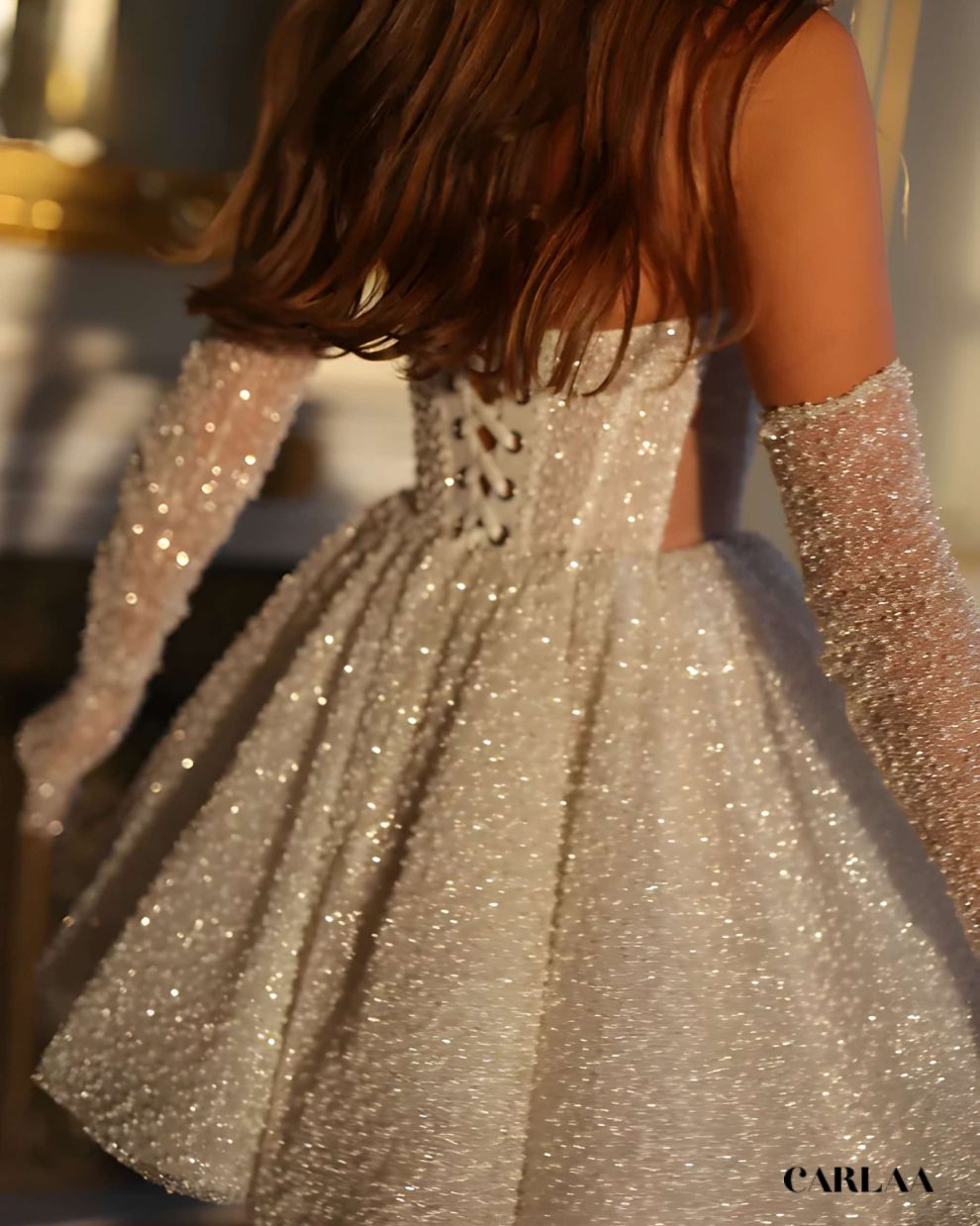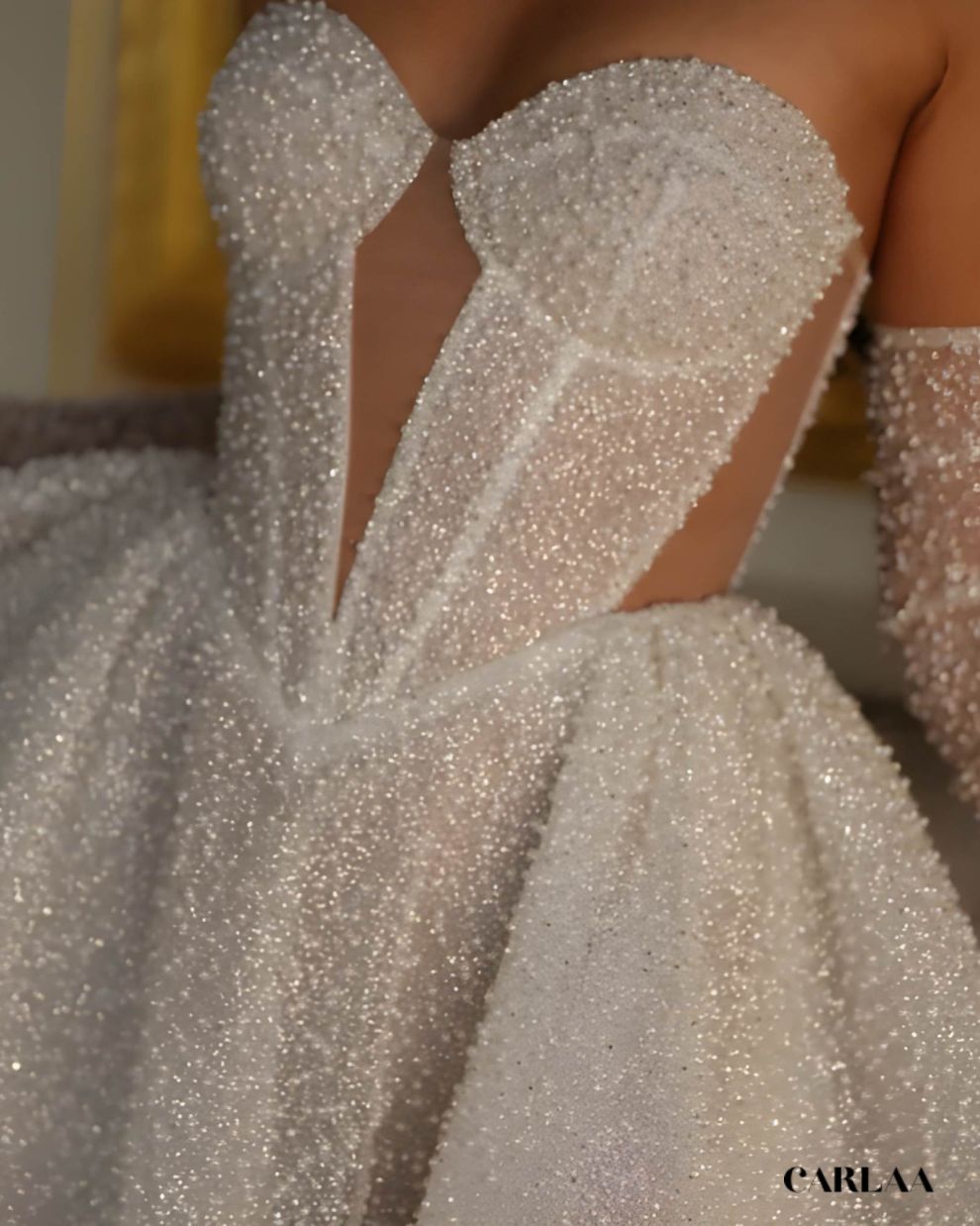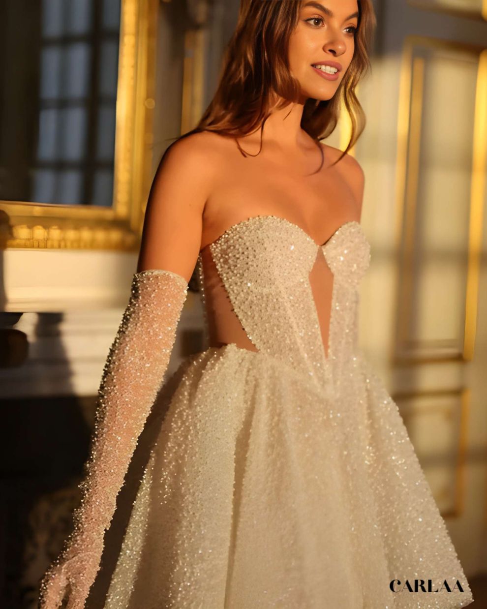 Laisse-toi envoûter par cette robe de mariée courte princesse qui réinvente le conte de fées avec une audace contemporaine absolument irrésistible. Cette création enchanteresse combine la magie intemporelle d'une silhouette princesse avec la modernité pétillante d'une longueur courte qui libère tes mouvements et célèbre ta joie de vivre. Le bustier structuré sans bretelles sculpte délicatement ton décolleté et maintient parfaitement ta silhouette tout en créant cette allure romantique et sophistiquée. La jupe volumineuse ornée de perles scintillantes capte la lumière de façon féérique et crée un effet virevoltant absolument magique à chaque pas. Les manches détachables perlées ajoutent une dimension glamour et versatile qui te permet de transformer ton look entre la cérémonie et la réception.
