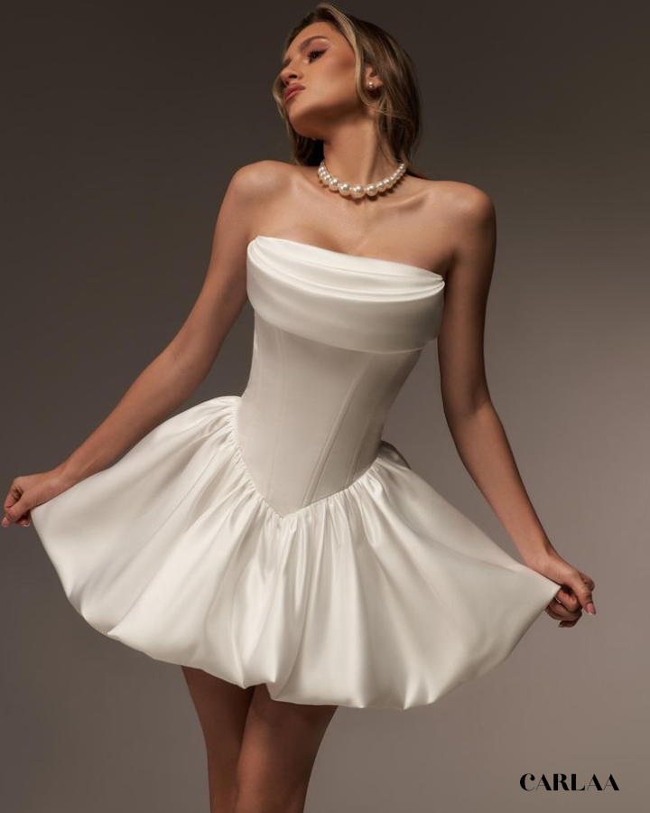 ✨ Robe de Mariée Courte Simple et Chic - Création Romantique charme de cette sublime robe de mariée courte simple et chic signée qui incarne l'élégance minimaliste avec une touche de glamour intemporel ✨