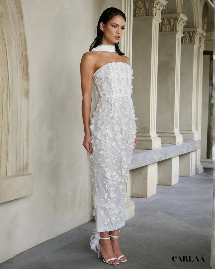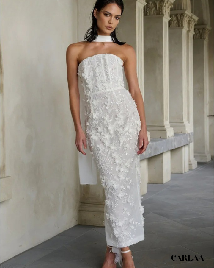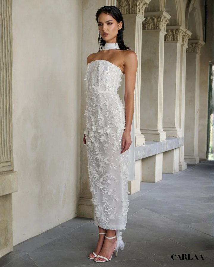 ✨Robe de Mariée Midi Fleurie - Embrasse le romantisme contemporain avec cette robe de mariée midi fleurie qui transforme ton mariage en jardin poétique d'une élégance saisissante✨