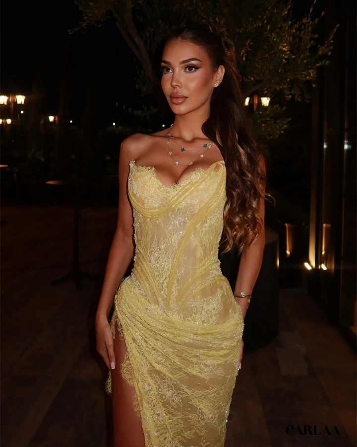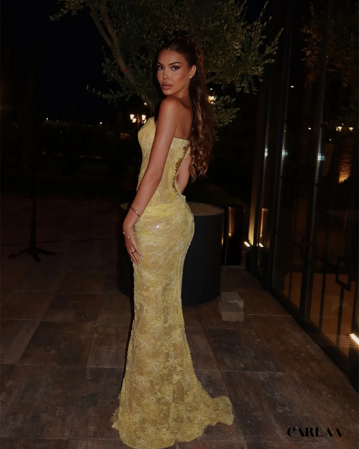 ✨Robe Sirène Jaune Pastel - Glamour Éblouissant et Féminité Envoûtante✨
