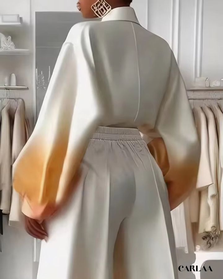 Son design fluide met en valeur la silhouette tout en offrant un confort absolu. Les manches amples légèrement dégradées apportent une touche artistique et lumineuse, idéale pour un look de femme confiante et stylée. Parfaite pour un événement, un dîner chic ou une soirée élégante, cette pièce incarne l’élégance intemporelle et la modernité CARLAA.