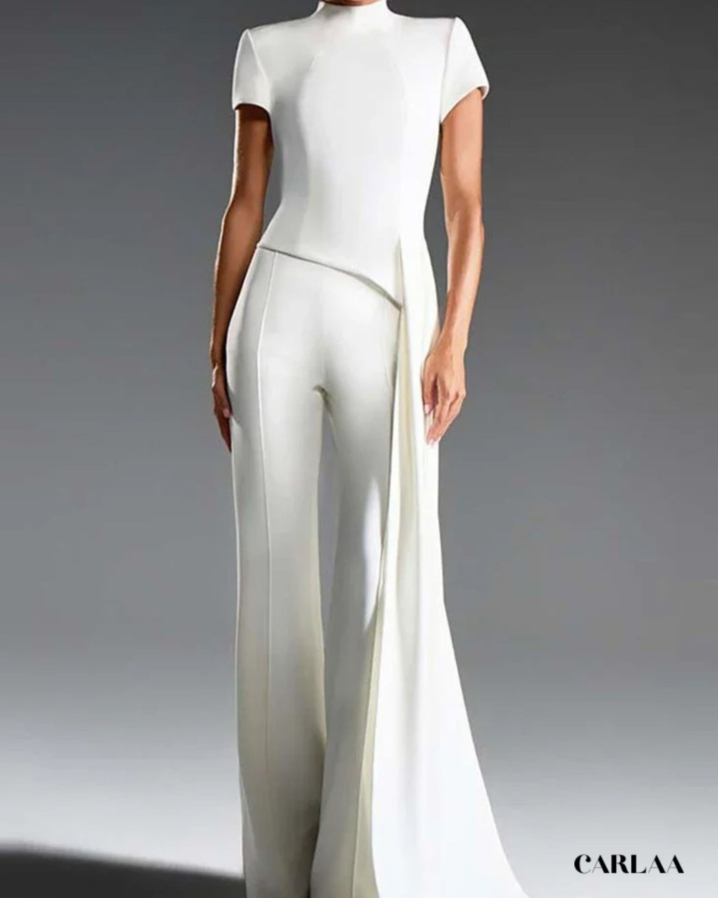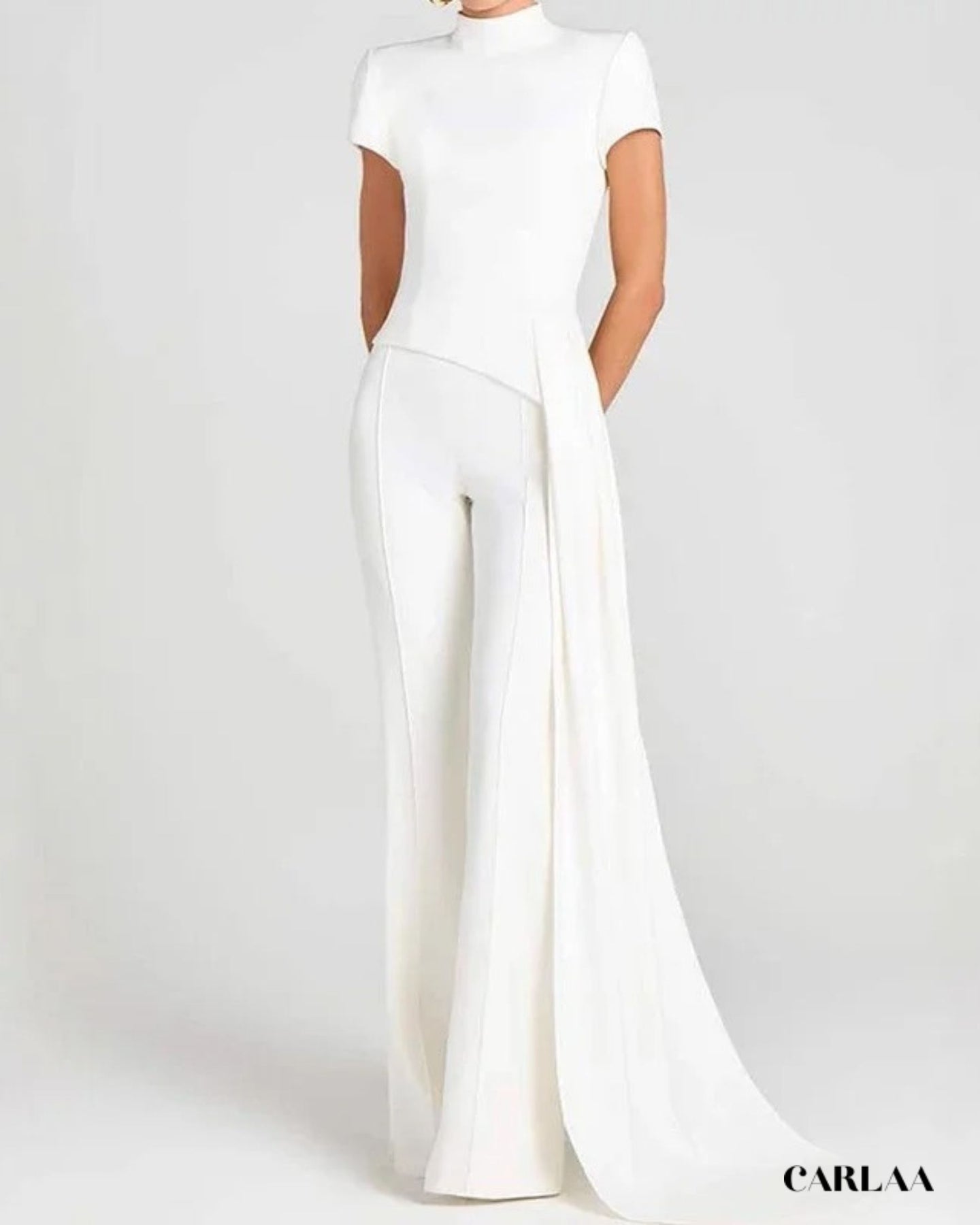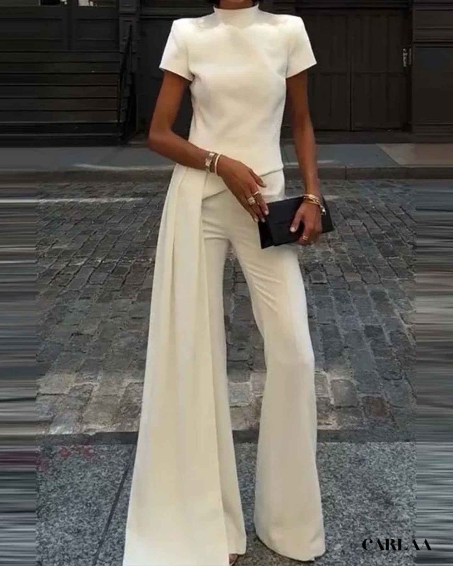 Affirme ton style avec cette tenue deux pièces d’une élégance absolue. Conçue pour sublimer la silhouette, elle marie une coupe structurée à un drapé fluide qui allonge la jambe et apporte un mouvement gracieux à chaque pas. Le haut ajusté à col montant souligne la prestance, tandis que le pantalon évasé offre confort et raffinement. Disponible en noir pour une allure sophistiquée ou en blanc pour une touche lumineuse, cette tenue incarne la féminité contemporaine dans toute sa splendeur.