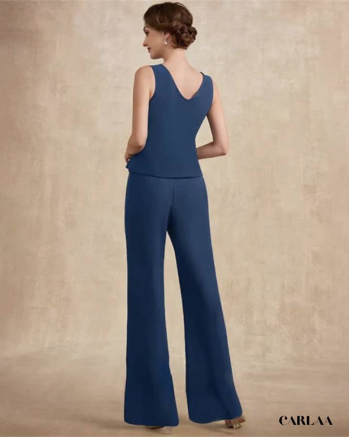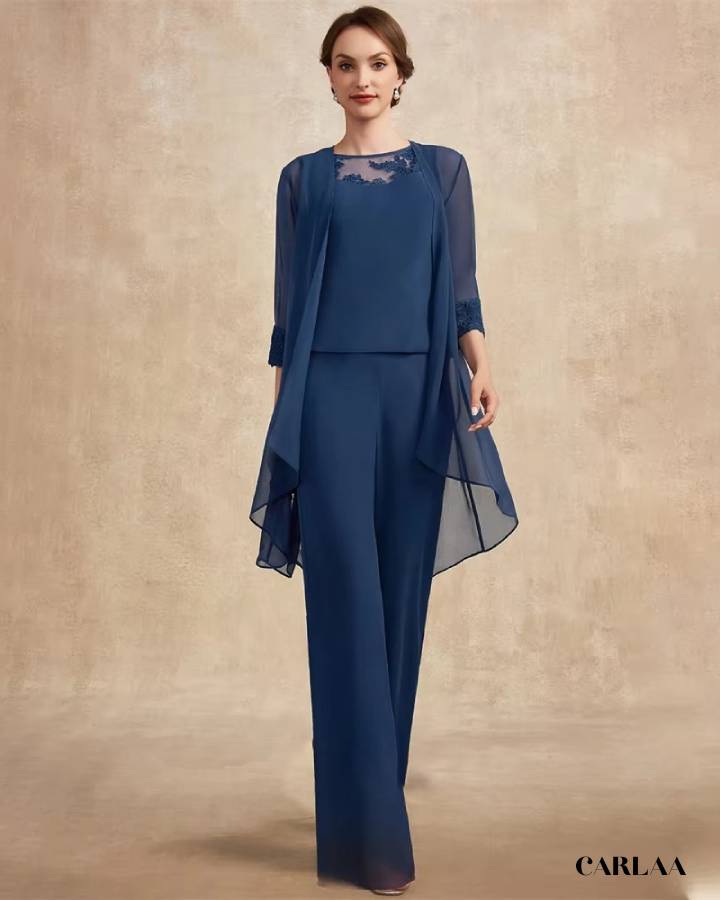 Le haut délicatement orné de dentelle ajoute une touche sophistiquée, tandis que le pantalon droit élance la silhouette avec chic. La veste légère en voile complète l’ensemble avec une allure aérienne, parfaite pour un mariage ou une cérémonie. Tu seras à la fois élégante et à l’aise, prête à rayonner en toute circonstance. ✨