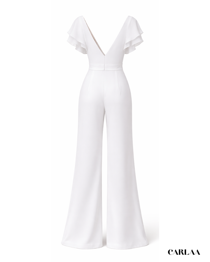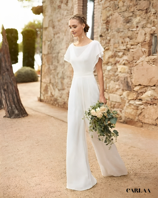 Avec ses lignes épurées et son tissu fluide qui épouse parfaitement les courbes, elle est idéale pour un look raffiné et confortable. Que tu sois la mariée audacieuse ou une invitée stylée, cette tenue fera tourner les têtes.