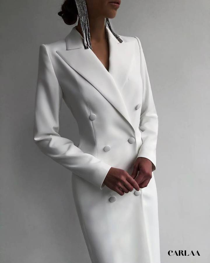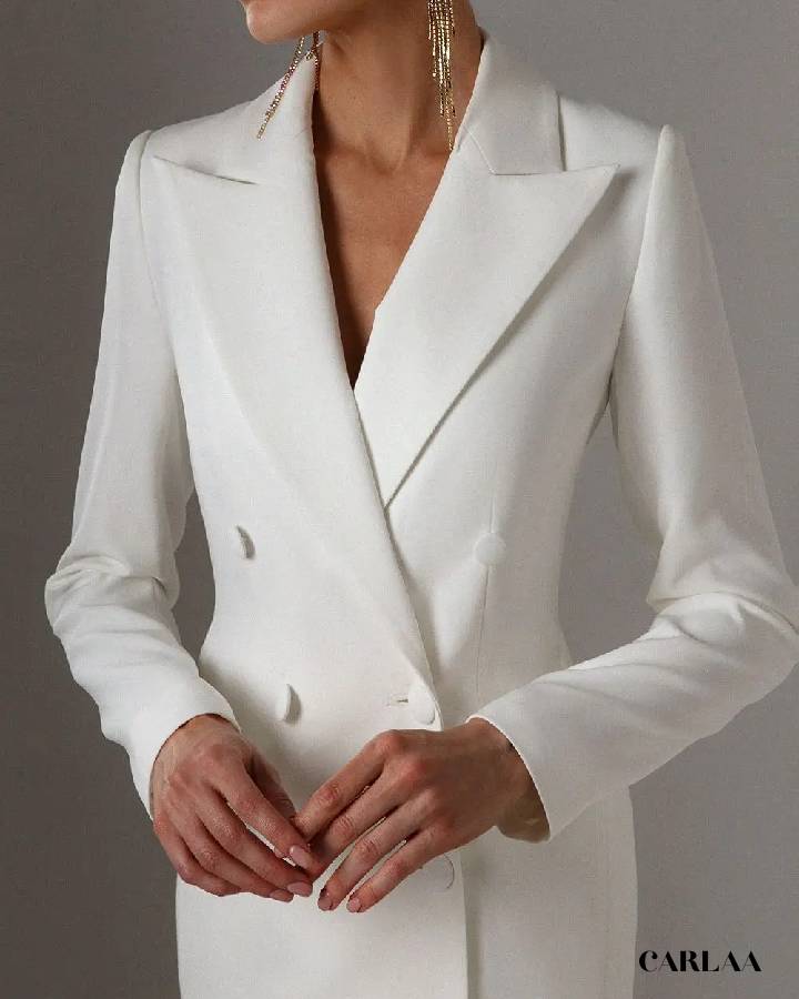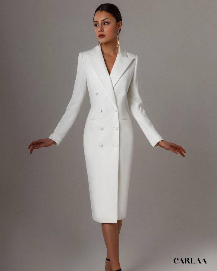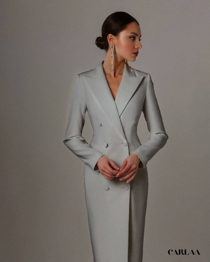 Sa coupe croisée à double boutonnage dessine une silhouette élancée et structurée, tout en apportant une touche moderne et sophistiquée. Polyvalente, elle se porte aussi bien avec une robe qu’avec un pantalon habillé, et se décline dans une variété de couleurs pour s’adapter parfaitement à ton style et à ton événement. Une pièce intemporelle qui allie élégance et modernité pour t’accompagner avec allure lors de tes plus beaux moments.
